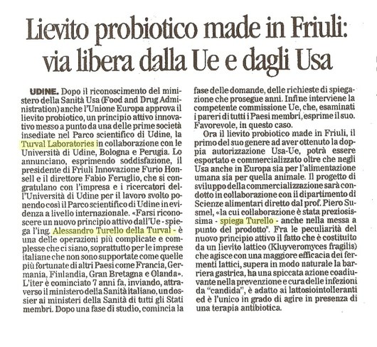 - 28-10-2007 Probiotic yeast made in Friuli: the all clear from the European Union and the Usa / Lievito probiotico made in Friuli: via libera dalla Ue e dagli Usa.