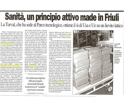 Dopo il riconoscimento del Ministero della Sanità Americano ( Food Drug Administration) anche l'Unione Europea approva il lievito probiotico (KLUYVER B0399), un principio innovativo messo a punto da una delle prime società insediate nel Parco Scientifico di Udine.