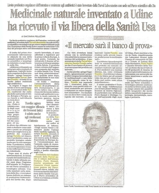 An intestinal regulator probiotic yeast (KLUYVER B0399), resistant to antibiotics, was patented by Turval Laboratories, which has its offices in the Scientific Park of Udine. The market will be the testing ground.