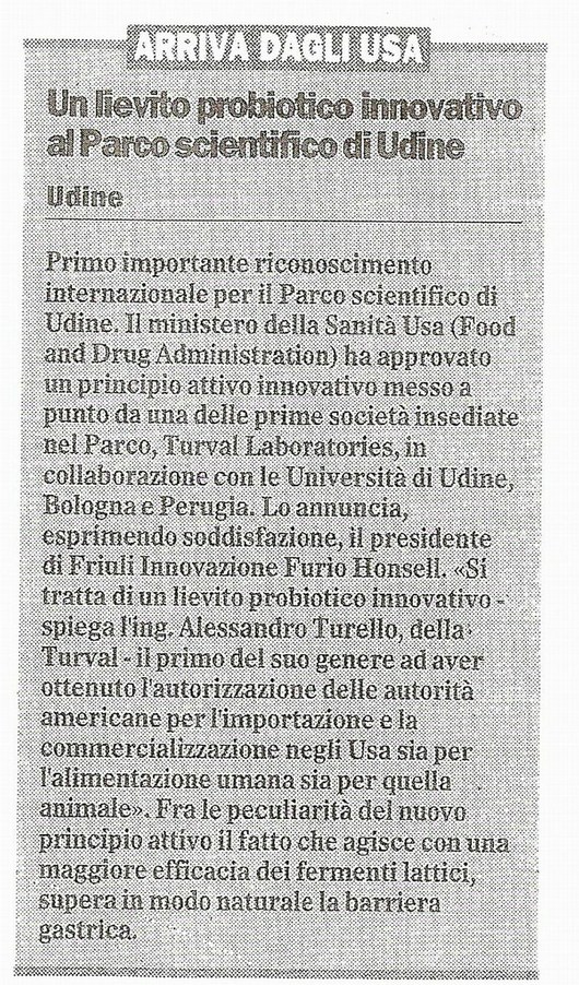 Il riconoscimento della UE e del Ministero della Sanità Americano ( Food Drug Administration ) dei prodotti Turval (KLUYVER B0399), hanno contribuito a dare lustro anche al Parco Scientifico di Udine.