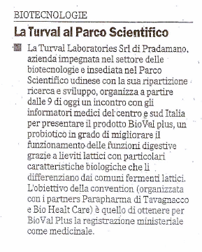 The approval the Turval products (KLUYVER B0399) obtained from the European Union and from the American Food and Drug Administration has contributed in giving luster to the Parco Scientifico of Udine as well.