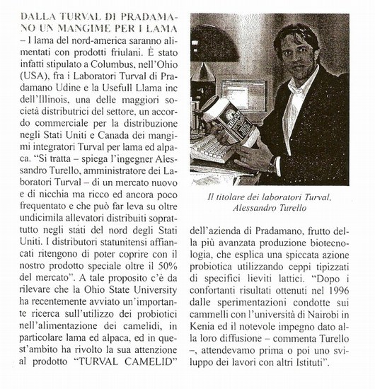- 02-10-2001 From Turval of Pradamano a feed for llamas / Dalla Turval di Pradamano un mangime per i lama