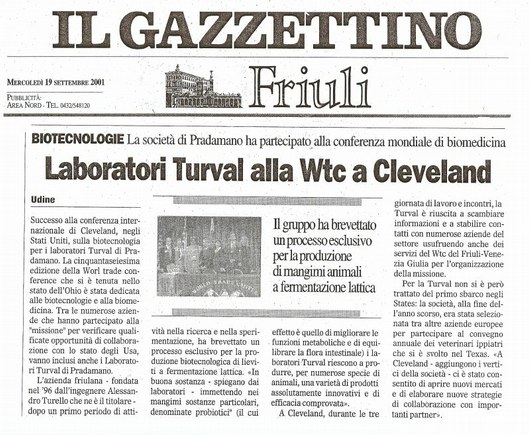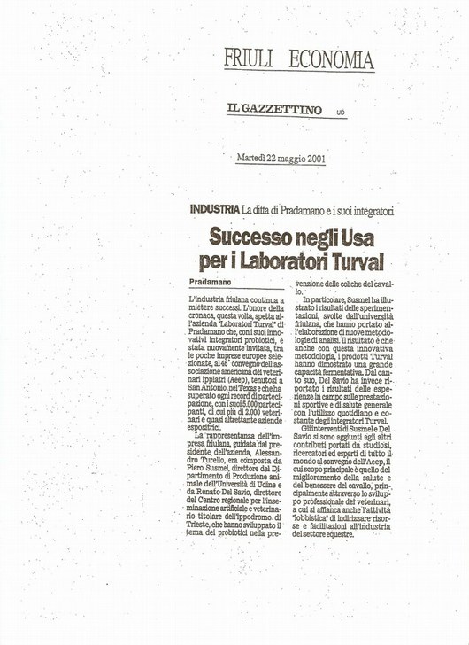 - 22-05-2001 Success in the US for Turval Laboratories / Successo negli Usa per i Laboratori Turval.