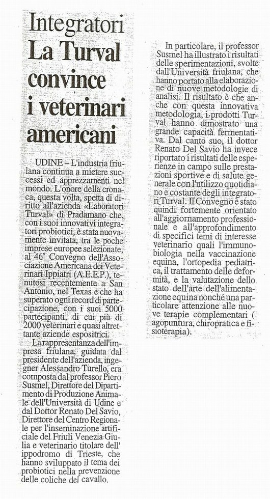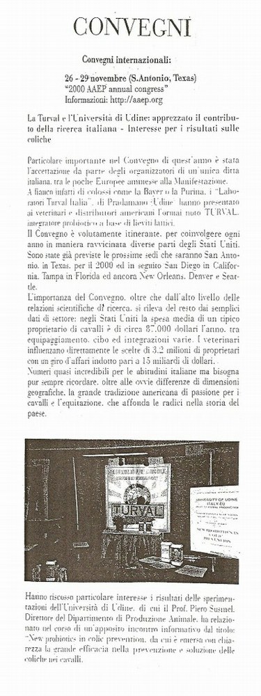 - 24-05-2001 Supplements. Turval convinces American veterinarians. / Integratori. La Turval convince i veterinari americani