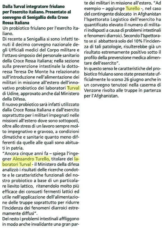 - 26-06-2008 Probiotic from Friuli for the Italian military / Probiotico friulano per l'esercito italiano